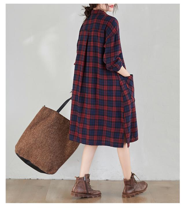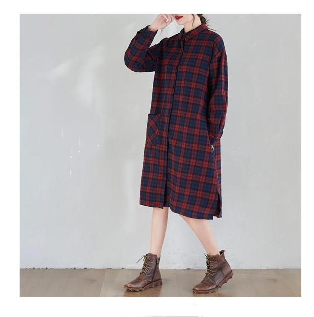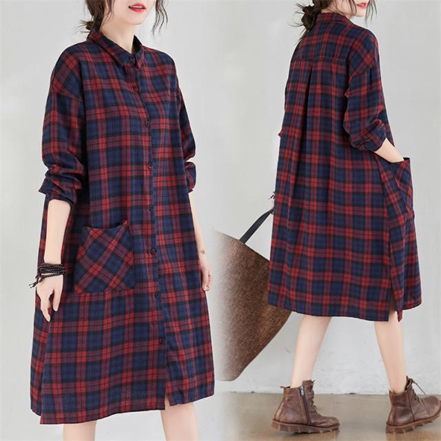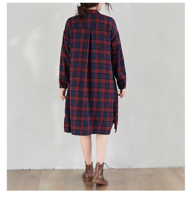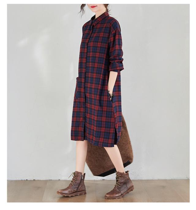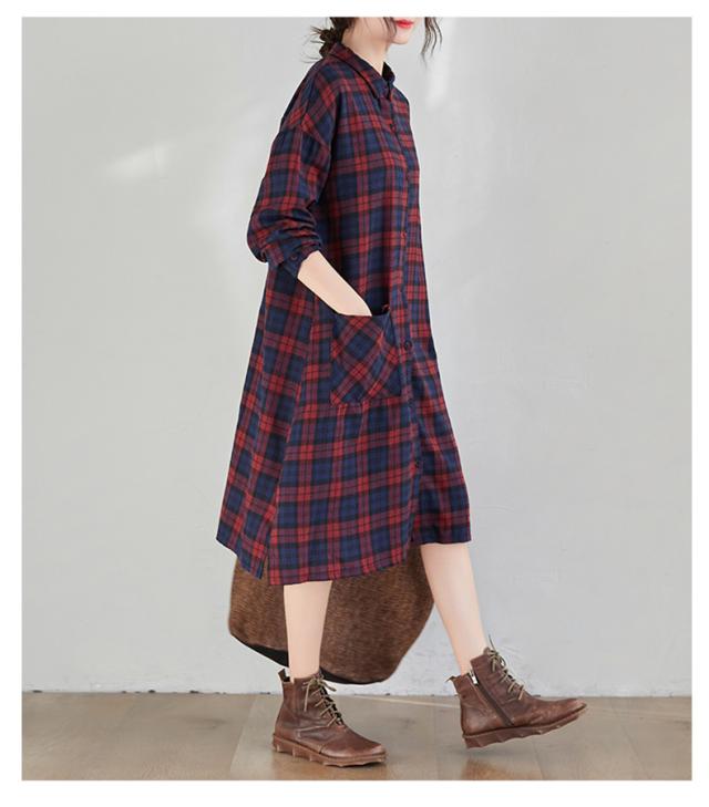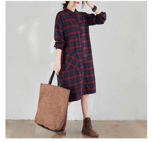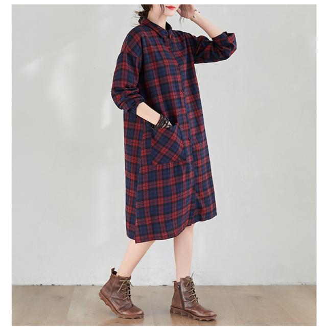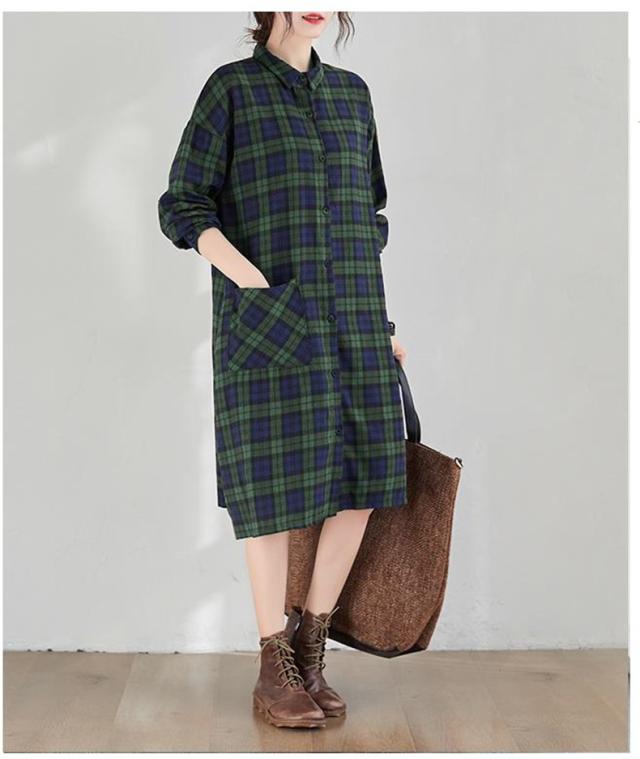シャツワンピース レディース トップス ロングシャツ 体型カバー チェック柄 体型カバー 大きいサイズ ナチュラル感とレトロ感たっぷり