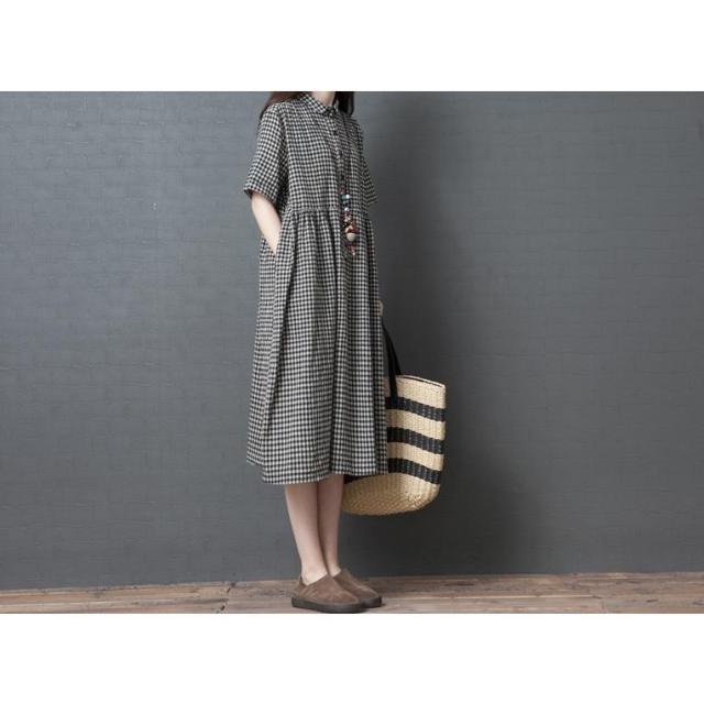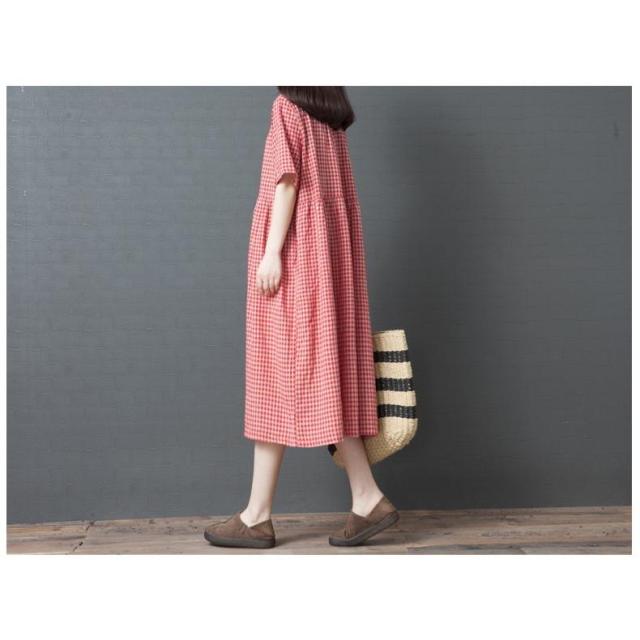 ロングワンピース 夏 レディース 綿麻混ワンピース コットン リネン ゆったり 体型カバー Aラインワンピース マキシ丈 半袖 大きいサイズ