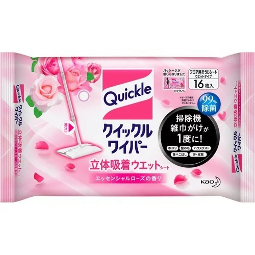 クイックルワイパー 立体吸着ウエットシート エッセンシャルローズの香り 【16枚】(花王)