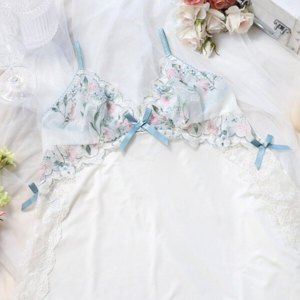 サイドのレースからは肌がほんのりと透け、抜け感のある軽やかな印象に。