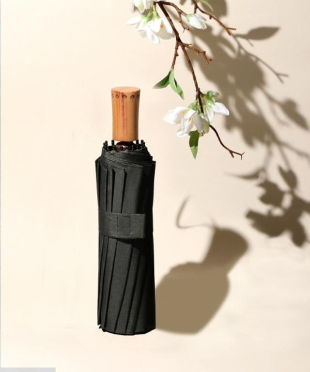 【ハンドメイド 木製持ち手 珍しい16本骨 折りたたみ傘】工程を熟練した職人が一つ一つ丁寧に仕上げる傘です。ハンドルなど細部までこだわり、カジュアルからエレガントまで幅広いスタイルに上品なアクセントをプラスしてくれます。雨の日が楽しみになる逸品です。