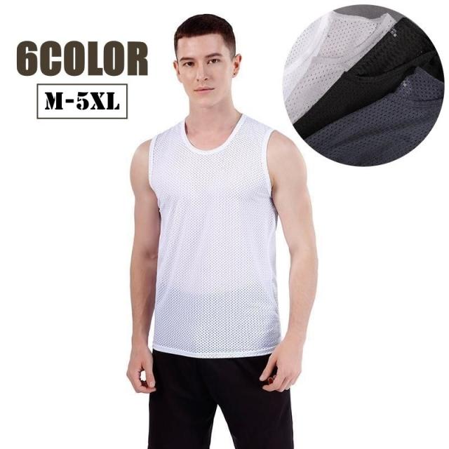 タンクトップ メンズ トップス 大きいサイズ インナー ノースリーブ ラウンドネック メッシュ シンプル 無地 通気性 薄手 シ