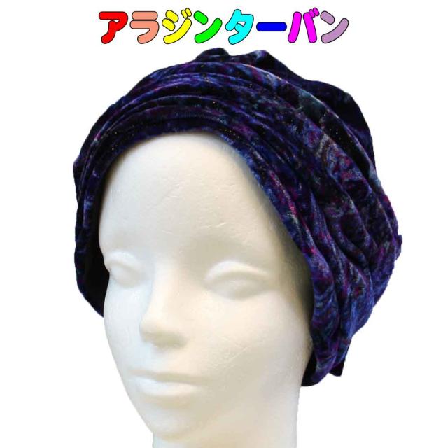 アラジンターバン(ネイビーマーブル柄)ベルベット アラビアン 民族衣装