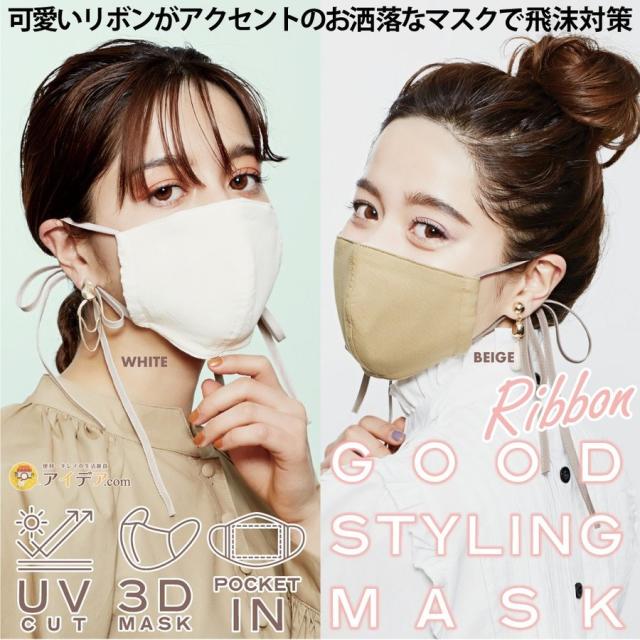 GOOD STYLING MASK WAVE コジット マスク 洗える 立体 マスク UVカット 紫外線 対策 水洗い 耳が痛くなりにくい かわいい おしゃれ マスク シンプル 耳ひもを好きに結んでアレンジ可能。コーディネートのアクセントに