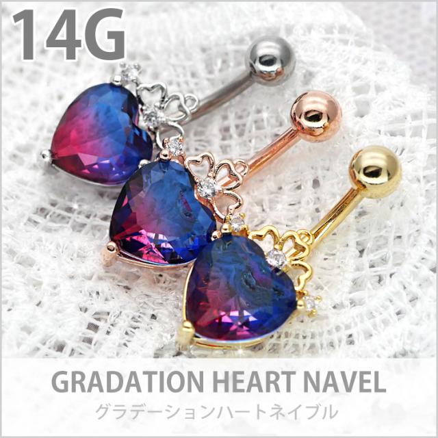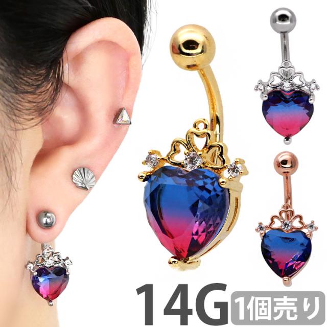 ピアス 軟骨 ボディピアス へそピアス グラデーションハートネイブル 14G シェル ピアス ヘソピアス