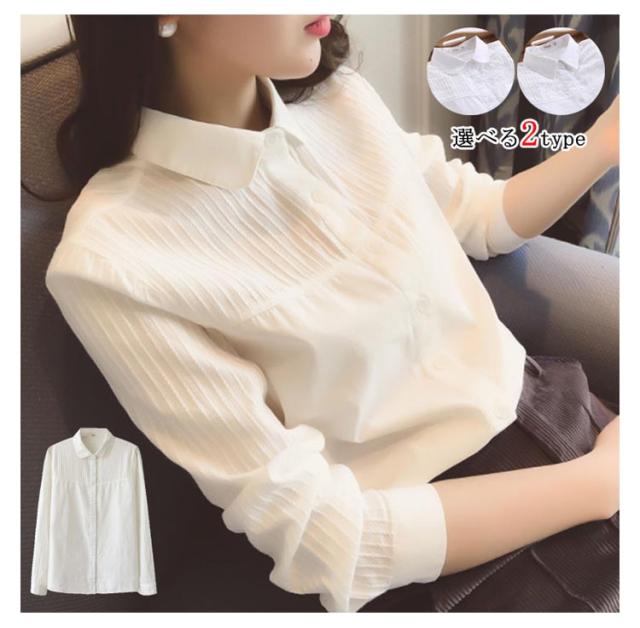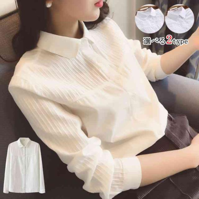 シャツ レディース ブラウス トップス 白シャツ 折襟 長袖 無地 オフィス 大人 可愛い 通勤 OL カジュアル おしゃれ 春 2019
