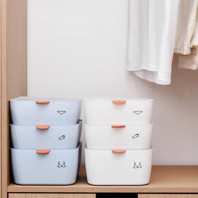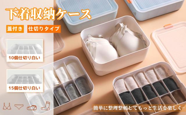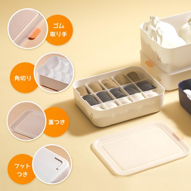収納ボックス 蓋付き下着収納ケース 仕切りボックス 重ね置きケース プラスチックボックス ホワイト 1個