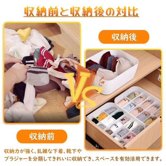 【収納力抜群】 仕切り収納ケースは様々な場合にも適用できます。例えば下着、靴下、ネクタイ、パンツ、赤ちゃんの小さい服及び仕事用品などの小物がたくさん分類して収納できます。ドレッシングの時間を50 %ほど節約できます。散らかしやすい小物を簡単に収納できます。
