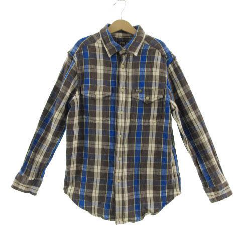 【中古】POLO RALPH LAUREN シャツ ネルシャツ 長袖 コットン チェック 青 グレー 茶 アイボリー 150/76