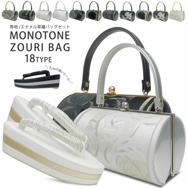 モノトーンの3枚芯のハイクラス帯地草履バッグセット