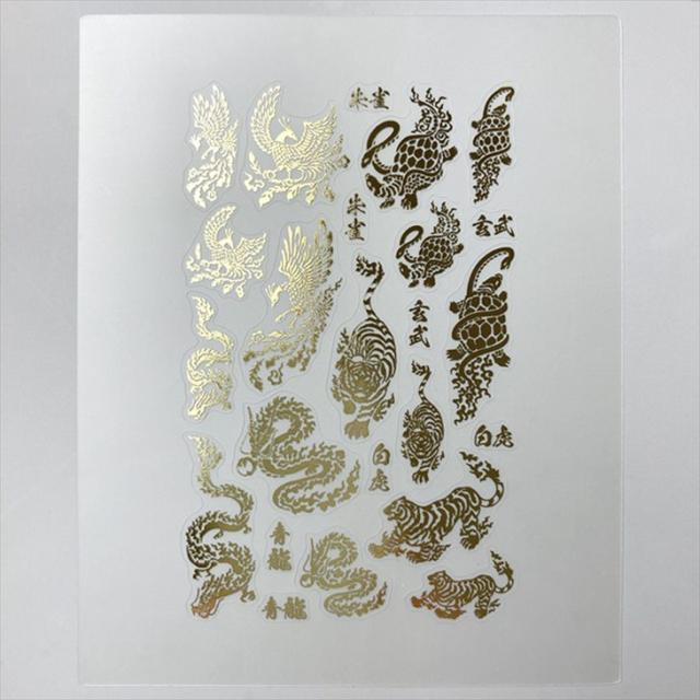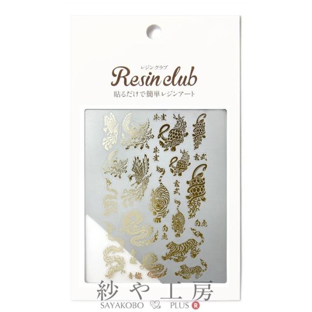 Resin club(レジンクラブ) 埋め込みレジンシール 四神 アクセサリー パーツ ゴールド 88×150mm 1個 生き物 青龍 朱雀 白虎 玄武 レジン用 封入 問屋 レジン用品 レジンシール レジン封入 ハンドメイド資材 さや工房 手作り アクセサリーパーツ 卸 おすすめ