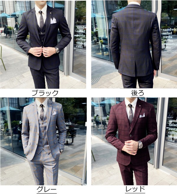 【レビュー投稿で+5%還元】男性用 春夏 スリム 大きいスーツ 小さいスーツ グレー 赤 黒 メンズスーツ チェック柄 ビジネススーツ 2つボタン M L LL 3L 4L 5L メンズ MEN 紳士 スーツ オシャレ 入社式 入学式 卒園スーツ dg328g4