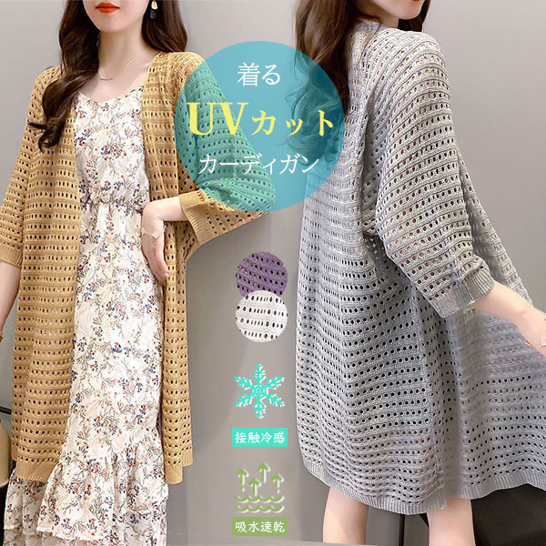 ポイント超超祭利用可 カーディガン レディース ロング丈 薄手 日焼け対策 コットン 春夏 UV カット トップス ボレロ カットソー 接触冷感 吸水速乾 サマーニット