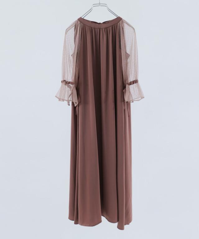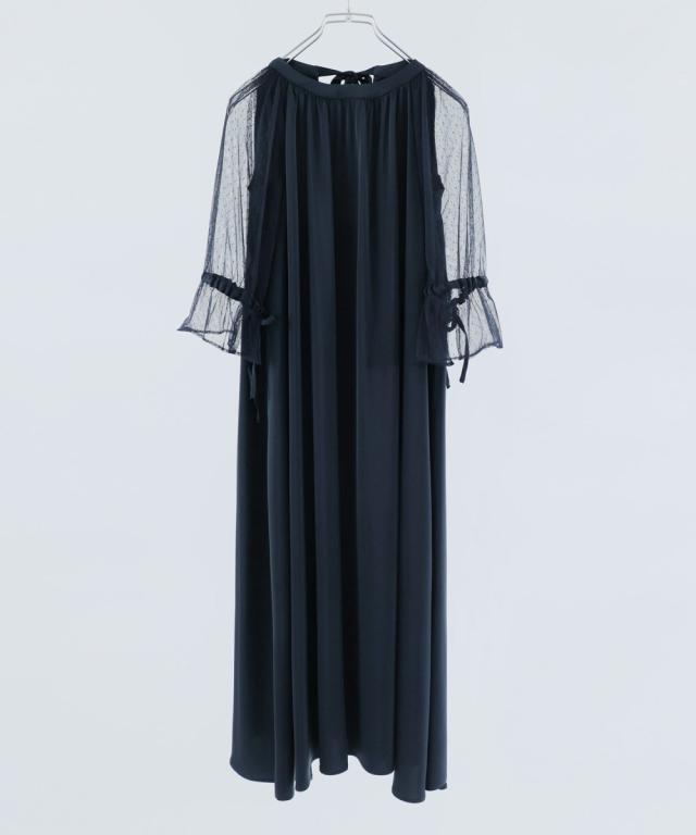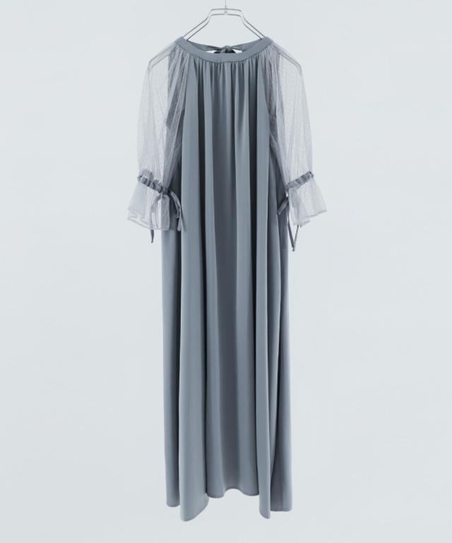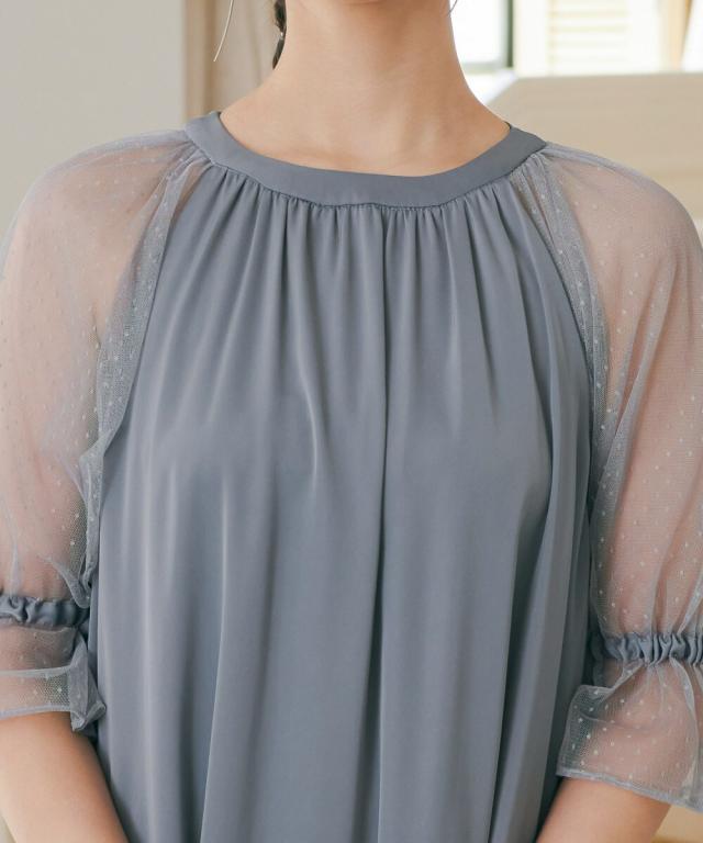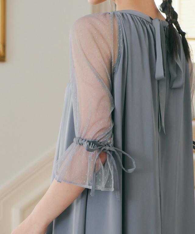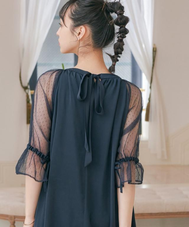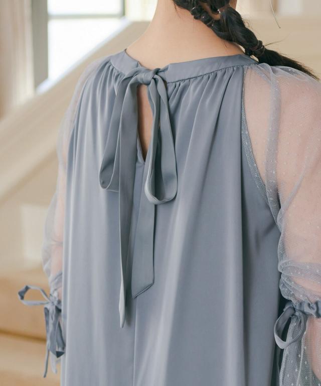首元にギャザーを入れて動きを出し、後ろはリボンで女性らしく。