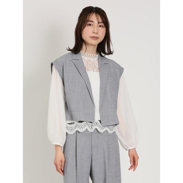 リネン風シャンブレー ショートジレ(セットアップ可能)