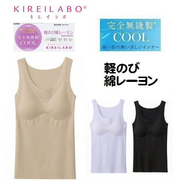 軽のび綿レーヨン カップ付き ラン型 綿混 ひんやり インナー パット タンクトップ クール 接触冷感 春夏素材 無縫製 KL7658 グンゼ キレイラボ