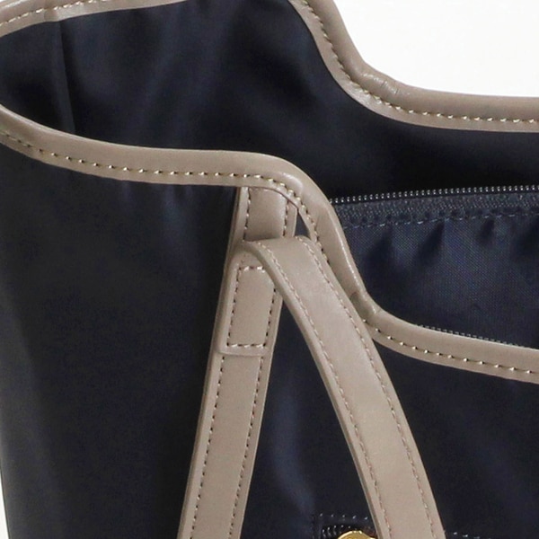 控えめな光沢感のあるメイン素材にリサイクルレザーを合わせています。