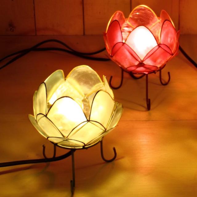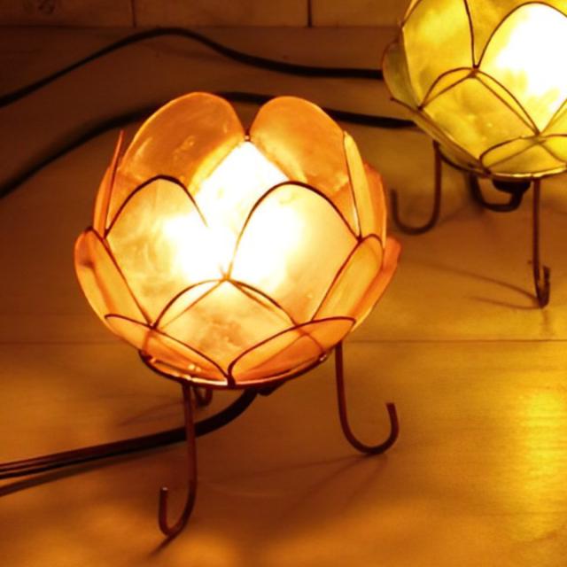カピス貝から素敵な光が広がるロータス型ランプ