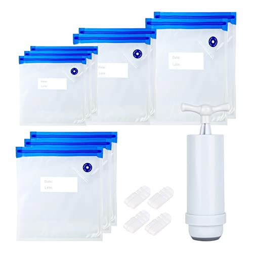 真空パック 袋 10枚 手動ポンプ付 密封用スライダー4枚付 PA&PE材質 二重チャック 新鮮度長持ち 抗菌袋 圧縮袋