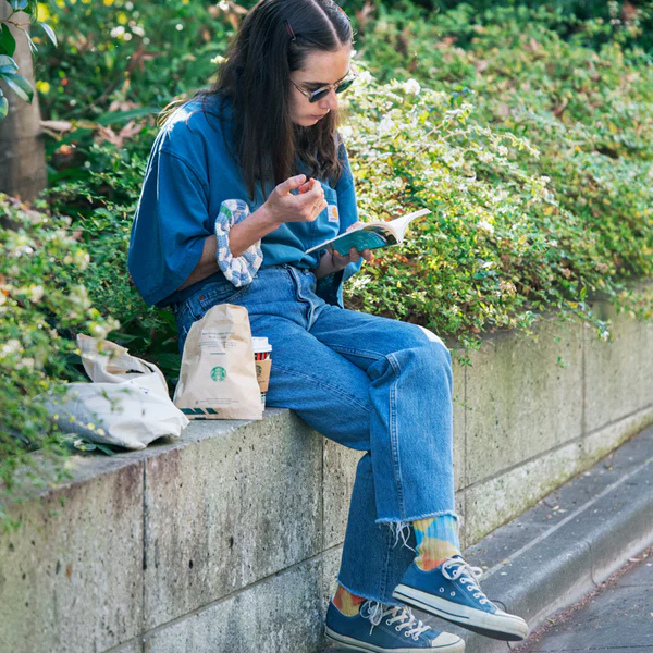 今や扱える職人の少ない希少な旧式のローゲージ編み機で、ざっくりと 編み立てたオーガニックコットン素材のリブソックスをタイダイ染めしました。 一般的なソックスに比べ、しっかりとした肉厚の生地ではありますが、 編み目が大きいため意外に通気性も良いのが特徴で、スニーカーはもちろん、 サンダルなどとも合わせていただきたいソックスです。 ※乾燥機の使用は縮みの原因となりますのでお避けください。 | ||||