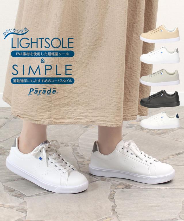 超軽量 スニーカー レディース 黒 白 おしゃれ ローカット レースアップ コートスニーカー 軽い 歩きやすい 疲れにくい かわいい シンプル 婦人 靴 981703 Parade