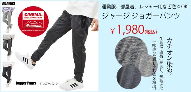 ■ジョガーパンツとは、まさにジョギング用に履くような活動しやすいパンツの事。そのため、運動着として適したスタイルです。