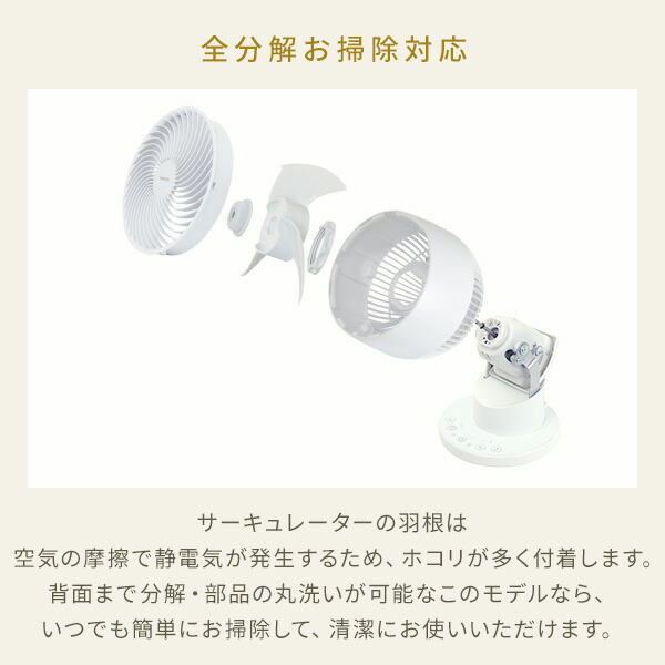 洗える サーキュレーター 全分解サーキュレーター 上下左右自動首振り 風量5段階 静音 切タイマー 〜18畳 YAR-BFVW181(WH) 換気 送風 上下左右首振り 首ふり 18cm羽根 小型 コンパクト 山善 YAMAZEN 【送料無料】