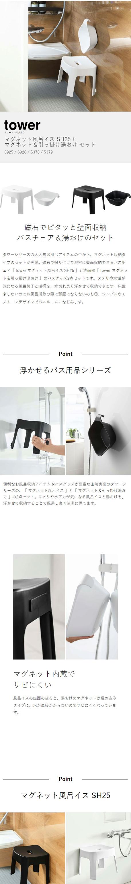 [ マグネット風呂イス SH25 + マグネット&引っ掛け湯おけ セット タワー ]