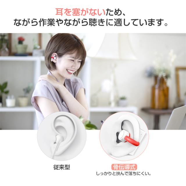 骨伝導イヤホン TWSワイヤレス Bluetooth5.3 イヤーカフ型 オシャレ 落ちにくい オープンイヤー 耳を塞がない 周囲の音が聞こえる 【PL保険加入済み製品・安心】