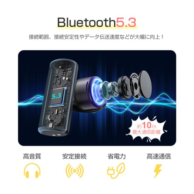 【安定したBluetooth通信】業界最新のBluetooth 5.3技術を採用、優れた省エネ性能を持つだけでなく、接続範囲、接続安定性やデータ伝送速度などにも大幅に向上し、従来の通信問題、音飛び、途切れ、遅延の状況などを幅広く改善されました。