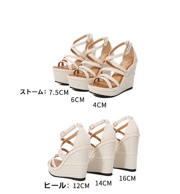 【レビュー投稿で+5%還元】ウエッジソール サンダル レディース 厚底 靴 厚底サンダル アンクルストラップ ハイヒール ヒール16cm/14cm/12cm 大きいサイズ 小さいサイズ ベージュ ウェッジヒール 美脚 ストライプ プラットフォーム 海 ビーチ di800c0