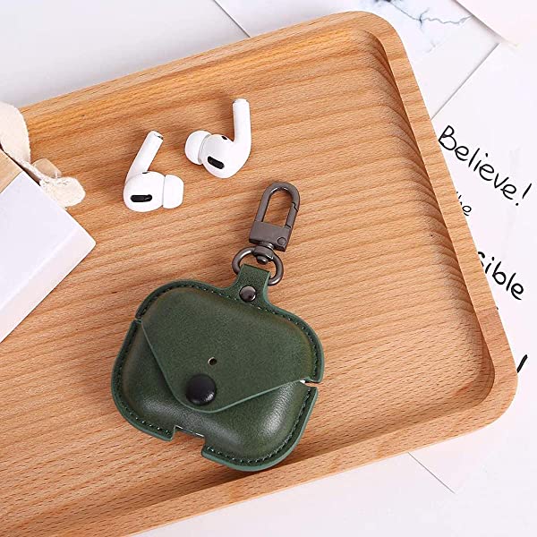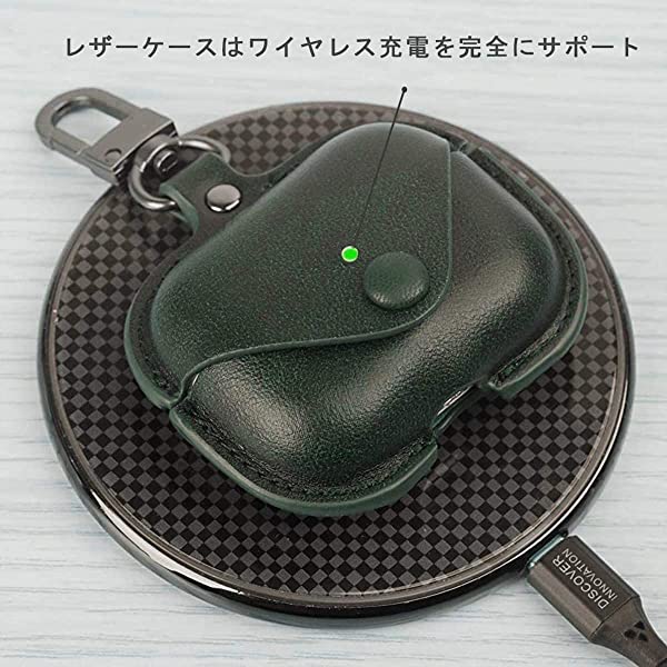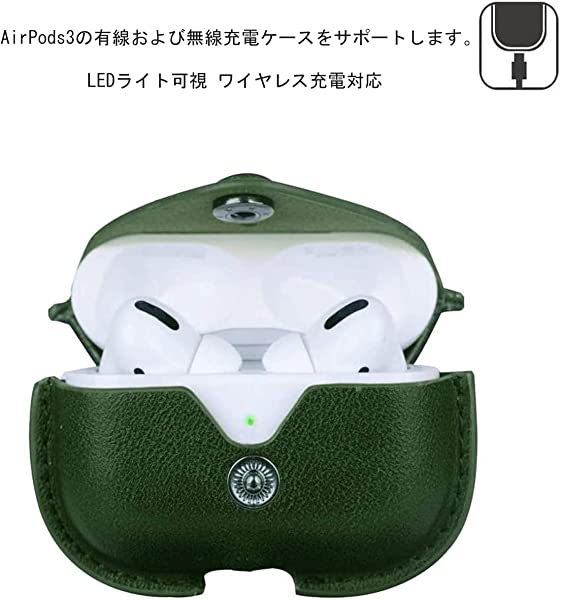 AirPods3 ケース AirPods 第3世代 に適用 airpods カバー エアーポッズ3 ケース PUレザー カラビナ付き エアーポッズ 3 ケース 全面保護 オシャレ 軽量 耐衝撃 ワイヤレス充電対応 前面のLEDが隠れない ハイブリッドカバー (グリーン)