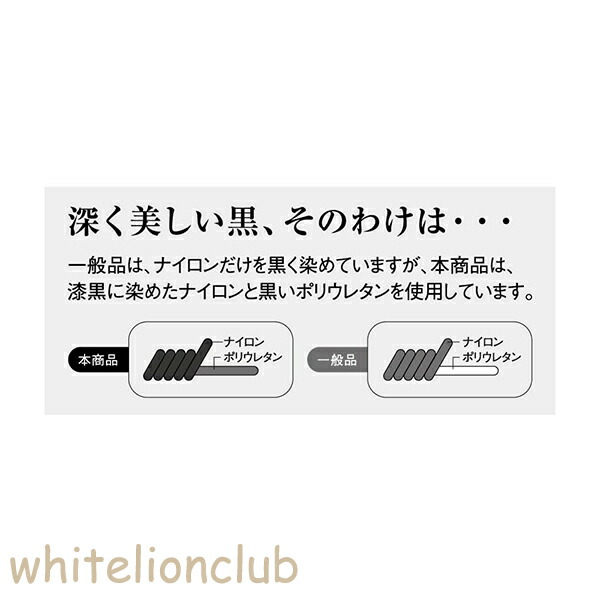 ナイロン糸を一般品より濃い黒で染め、さらに芯糸のポリウレタンまで黒くすることで、濃密でリッチな黒へ。