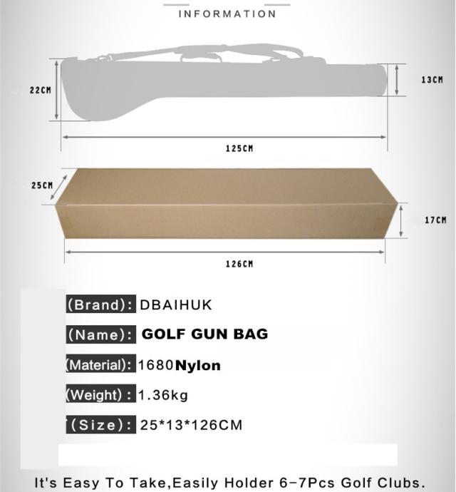 【商品特徴】◎リーズナブルかつ機能的で高品質なクラブケース。◎手軽で持ち運び自由自在のクラブケース。◎頑丈な高品質生地を採用。接続部やベルトも高品質の金属素材を搭載。◎ケースの底部分には「クッション」装備、大事なクラブを外部の衝撃から保護。◎便利で収納性の高いポケットでゴルフグッズ、タオルなどたっぷり収納可能◎使いたいクラブだけを持って、自転車、徒歩でも気軽に打ちっ放しや練習に。◎車のトランクに収納しておいてもとても便利!【 商品スペック】■サイズ:125*22*13cm■材 質:高品質耐摩1680ナイロン■重 量:約1.36kg■収納可能クラブ数:6−7本 ■原産国:中国