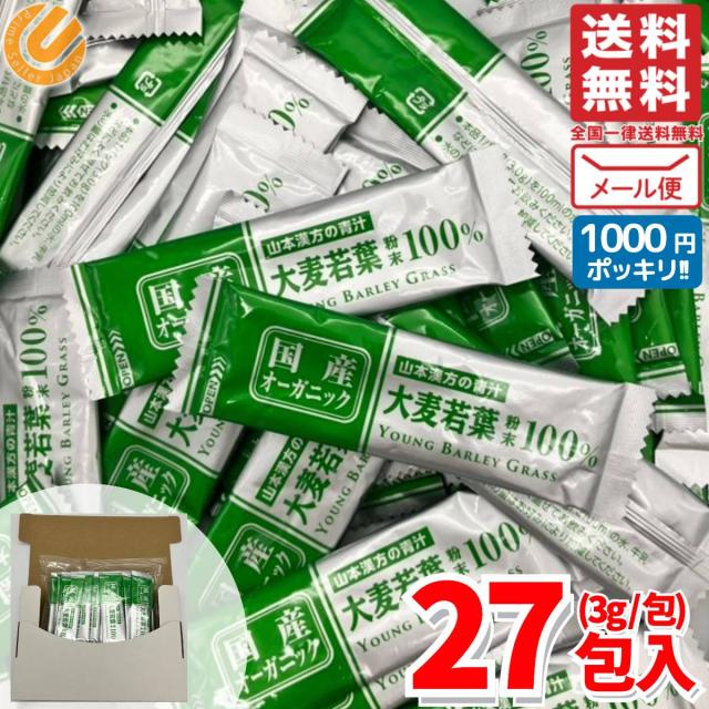 山本漢方製薬 メール便 国産 オーガニック 大麦若葉 粉末 27包 1000円ポッキリ 3g × 27包
