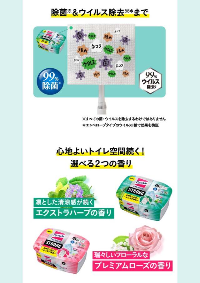 ・乾燥を防ぎ、品質を保持するため、必ず「トイレクイックルSTRONGエクストラハーブの香り」の本体容器につめかえて、容器のフタの手前をパチンと音がなるまで閉める。
