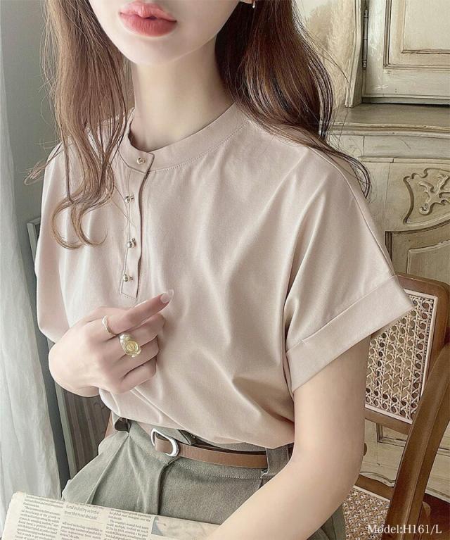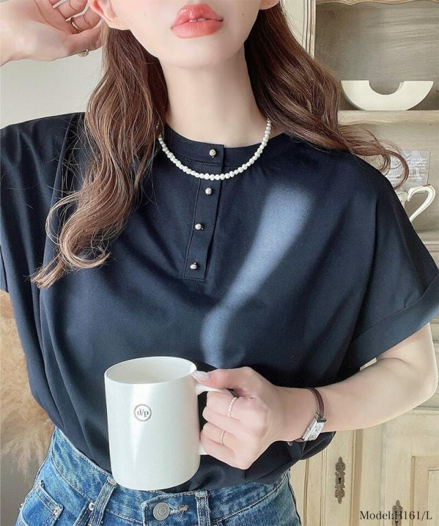 ★さらっと上級見え。2wayシルケットデザインボタンカットソー★