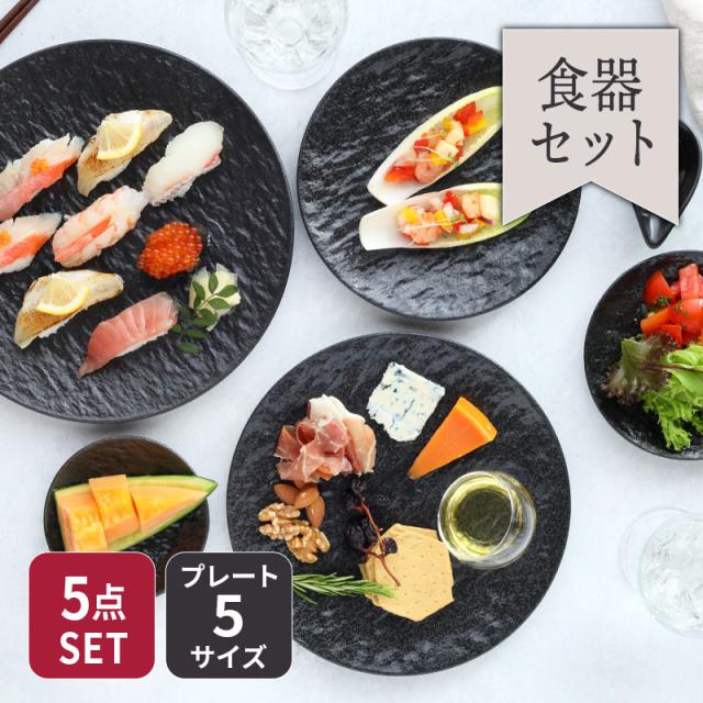スレート調プレート5サイズセット 送料無料磁器 日本製 美濃焼 シンプル 黒い食器 食器セット セット食器 ペア食器 プレート お皿 皿 食器 大皿 ディナープレート ワンプレート 盛り皿 パスタ皿 主菜皿 サラダ皿 デザート皿