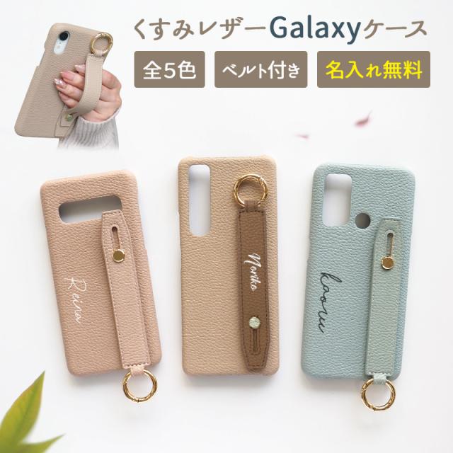 スマホケース スマホカバー Galaxy ケース【レザーハードケース×レザーベルト×名入れ印刷】スマホバンド付き 持ち手 ギャラクシー カバー 携帯ケース スマホスタンド ベルト 名入れ無料 メール便送料無料 受注生産【印刷】
