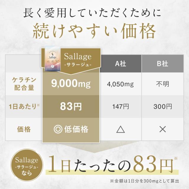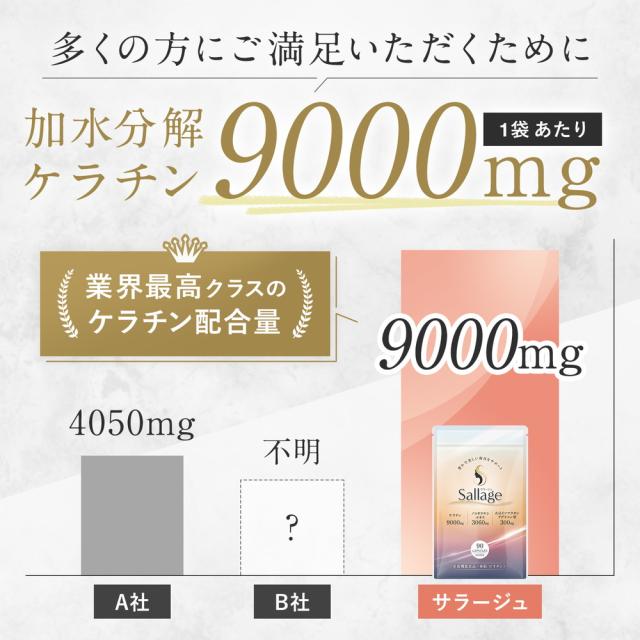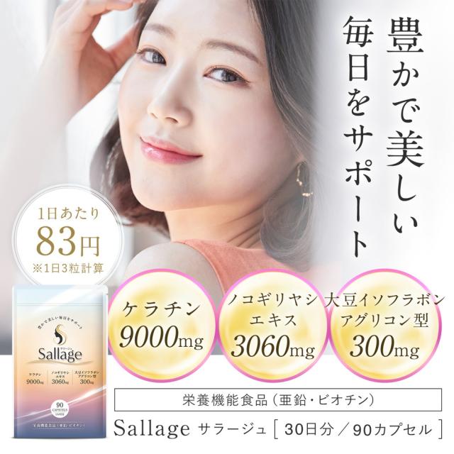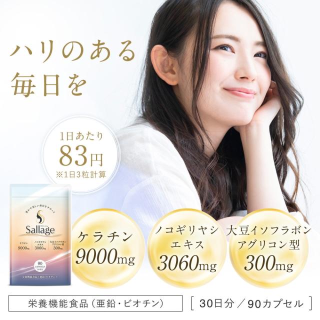 【レビューでポイント10%】ケラチン 9000mg ノコギリヤシ 大豆イソフラボン 吸収型 女性 ヘアケア サプリ 亜鉛 ビオチン 栄養機能食品 30日分 Sallage サラージュ