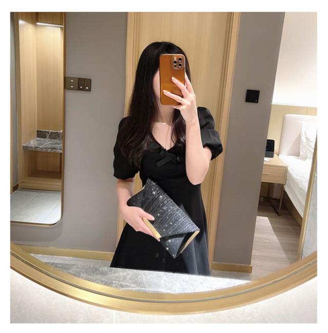 ◎着こなしスタイリングは、ドレスにワンピース、パンツスーツや和装和服とも好相性。iPhone、スマホも入ります。