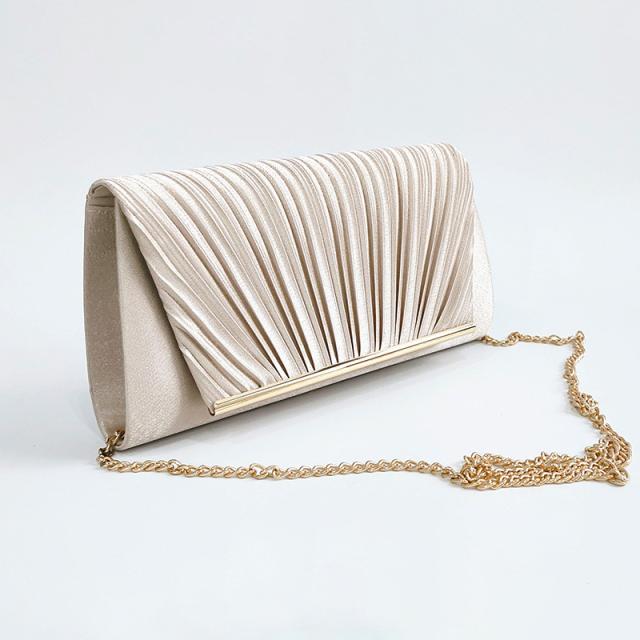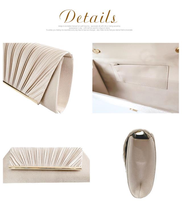 パーティーバッグ ハンドバッグ レディース クラッチバッグ チェーン 2way ショルダー バッグ プリーツサテン サブバッグ フ