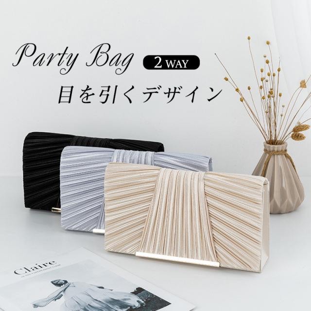 パーティーバッグ ハンドバッグ レディース クラッチバッグ チェーン 2way ショルダー バッグ プリーツサテン サブバッグ フ