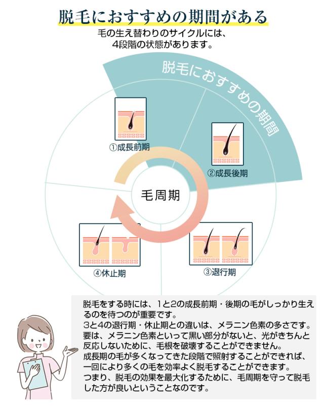 【IPL光技術】「IPL脱毛」とは「インテンスパルスライト」の略称で、毛に含まれる黒いメラニン色素に反応する光を照射し、毛根にダメージを与える脱毛方法です。