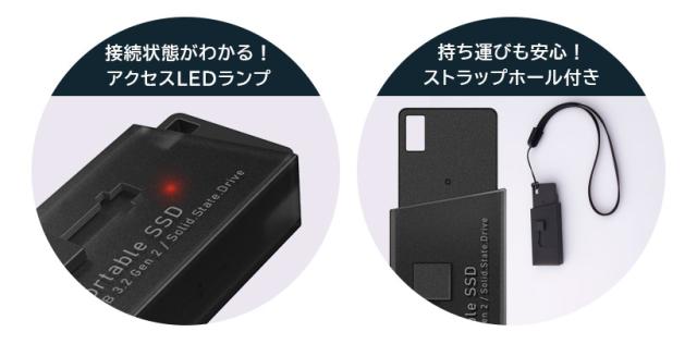 従来モデルよりグレードアップした内蔵SSDを採用したことで、読み込み最大1,000MB/s、書き込み最大700MB/sを実現。USB3.2 Gen2の性能を最大限発揮することができ、大量の画像ファイルや4K動画などの大容量ファイルをストレスなく転送できます。Windows、MACパソコンの他にゲーム機にもお使いいただけます。