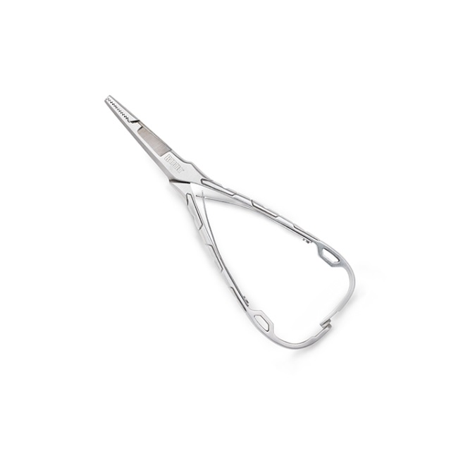 ミトン手袋使用時でも片手で開閉が可能なステンレススチールフォーセップ。