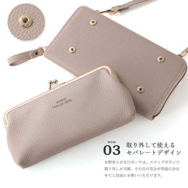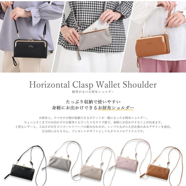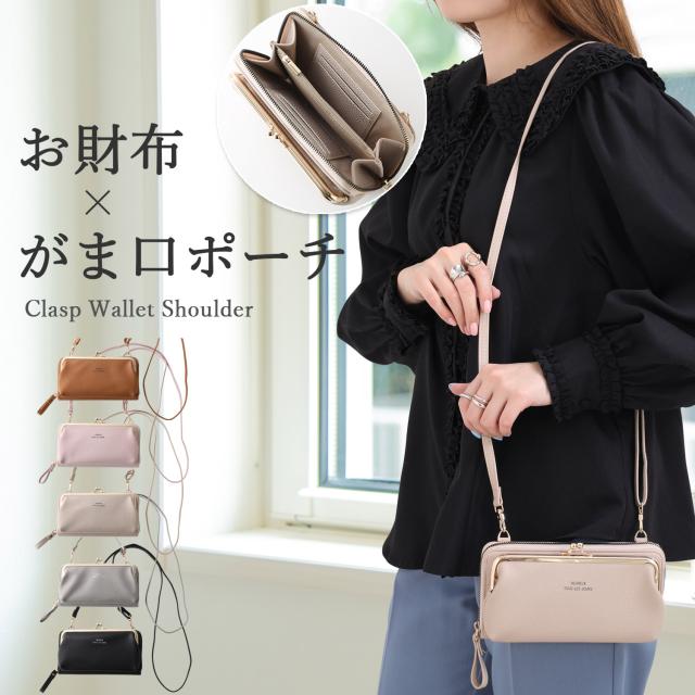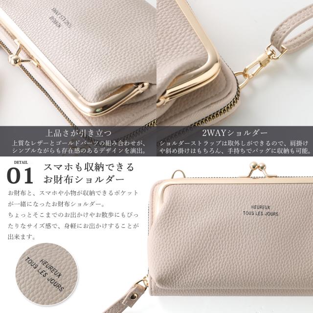 お財布ショルダー スマホショルダー レディース がま口 お財布ポシェット 財布 一体型 ショルダー スマホ 入る スマホポーチ ミニショルダー ショルダーバッグ 斜めがけ 使いやすい 横型 ヨコ型 大容量 軽量 レザー ファスナー ブランド 大人 ママ おしゃれ かわいい 人気