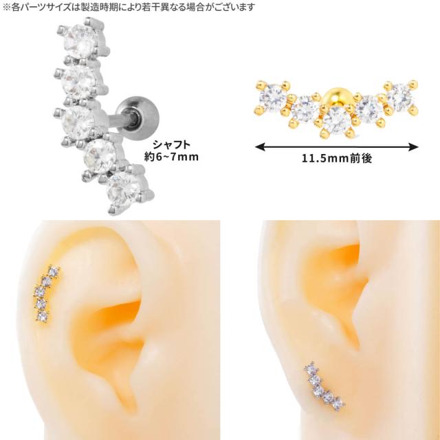 2個セット 5連 カーブ ジュエル ストレートバーベル 14G 16G 18G 20G サージカルステンレス ヘリックス 軟骨ピアス ボディピアス クリア