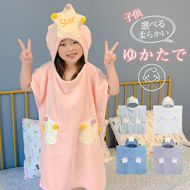 バスローブ キッズ 子供 バスタオル 女の子 男の子 無地 お風呂 プール 海水浴 暖かい 可愛い 柔らかい 吸水 上品 ルームウ