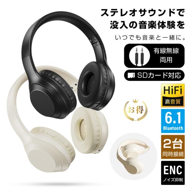 ワイヤレスヘッドホン イヤホン ヘッドセット Bluetooth6.1 HiFi高音質 USB充電 折りたたみ式 調節可能なヘッドバンド 有線無線両用 【PL保険加入済み製品・安心】